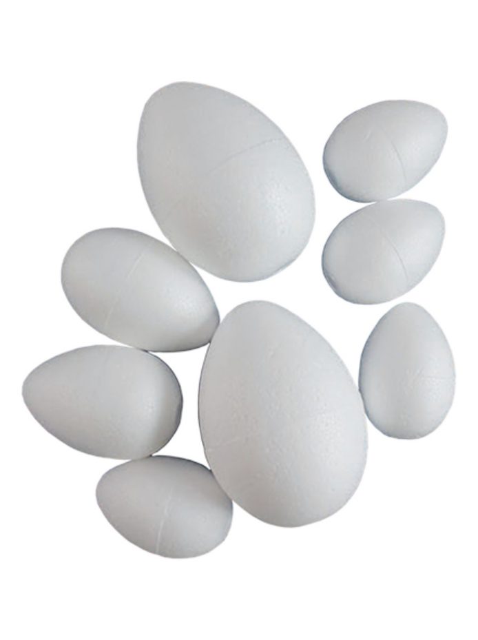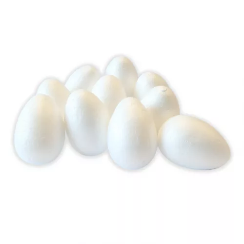 5 cm magas polisztirol tojás forma, mely vízfestékkel, temperával és akrilfestékkel is díszíthető, dekupázsolható stb.
