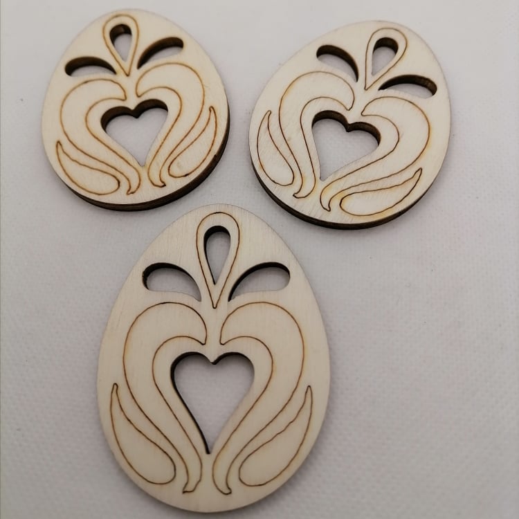 3 mm vastag rétegelt nyírfa lemezből készült felakasztható tojásdísz. Magassága 7 cm, szélessége 5 cm. A termék festhető, díszíthető Pl. akrilfestékkel, kontúrokkal, gyöngytollakkal.