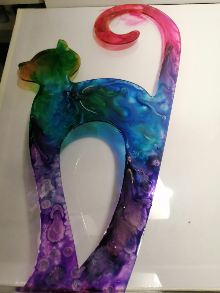 2 mm vastag víztiszta plexi alap, mely üvegfestékkel és akrilfestékkel díszíthető.