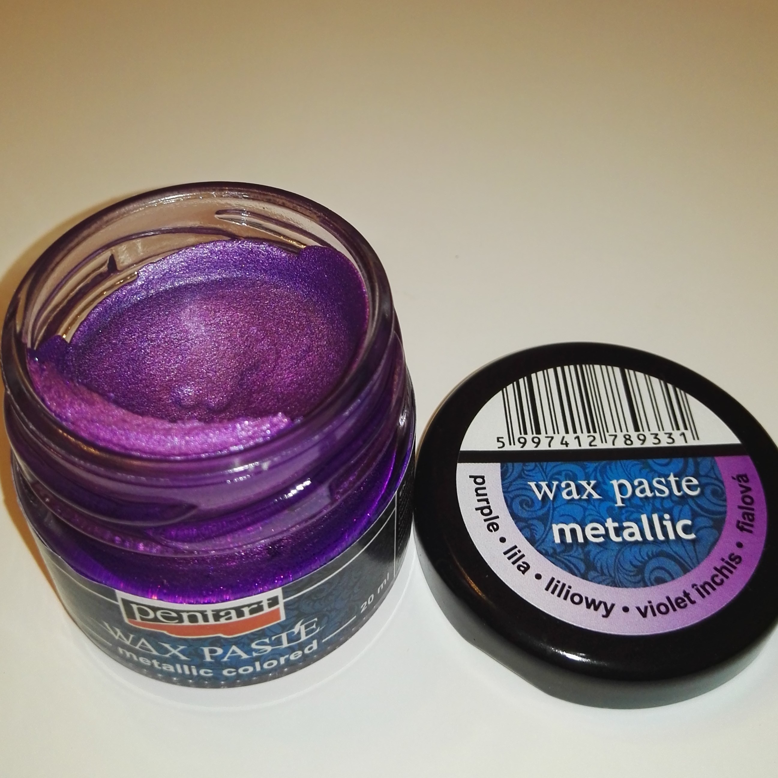 Pentart viaszpaszta Lila metál színben.