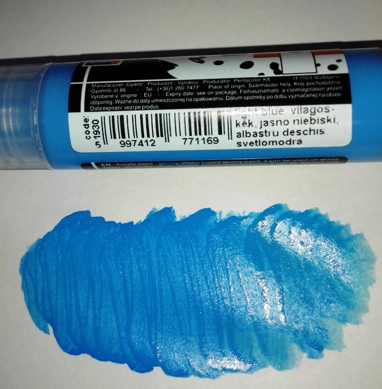Vizes alapú, jól fedő, vízállóra száradó fényes akrilfesték.