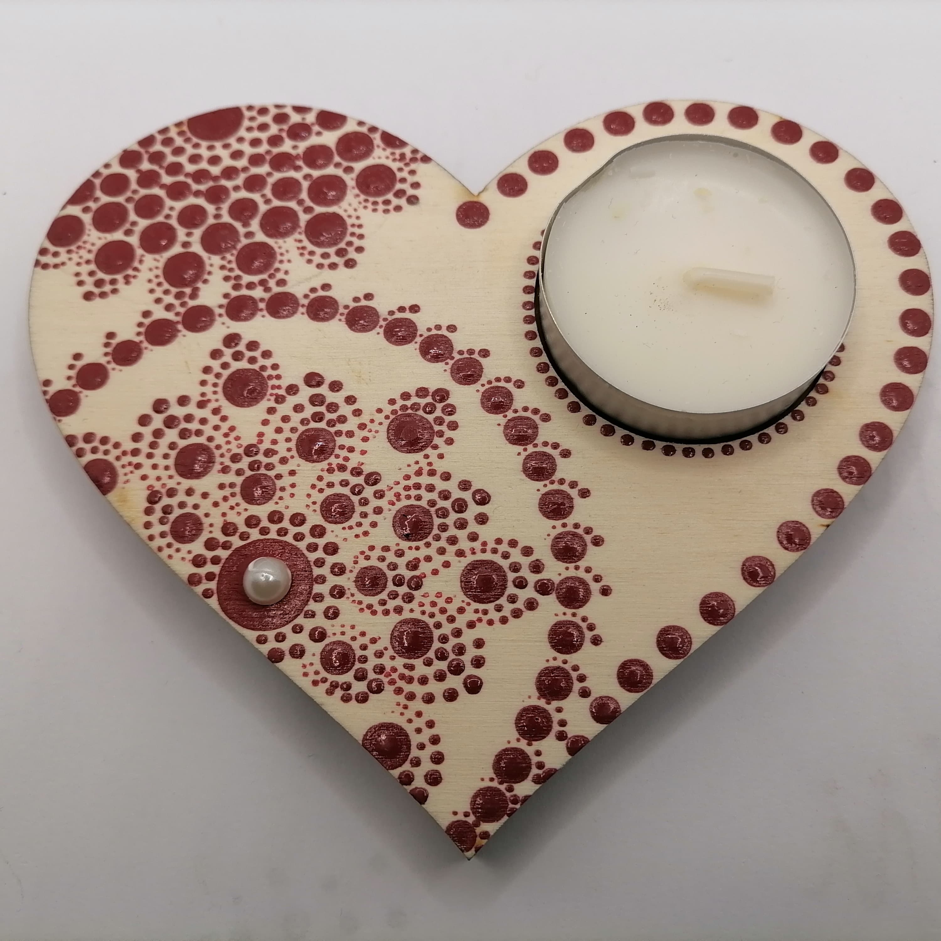 Piros- fehér szivecskés mécsestartó