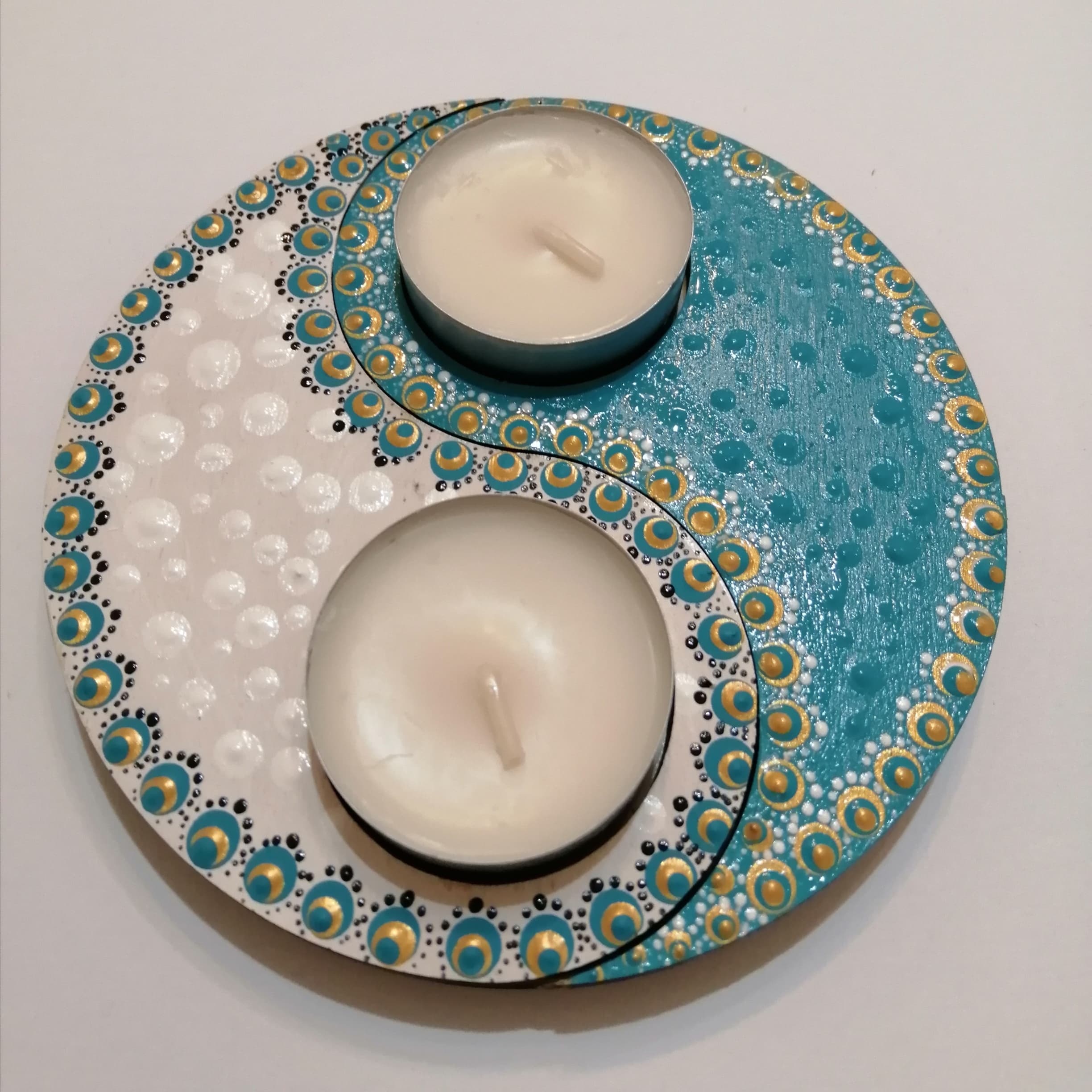 Türkiz-fehér Jin-Jang mécsestartó