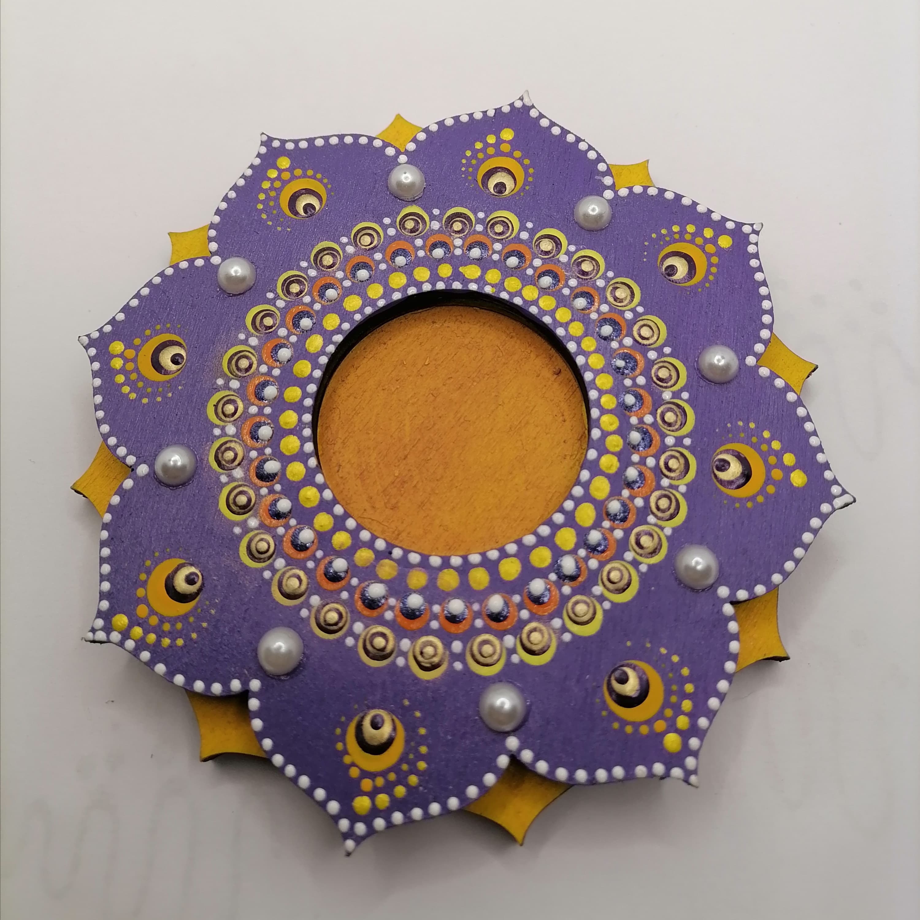 10 cm-es átmérőjű rétegelt nyírfa lemezből készült fa mécsestartó, melynek magassága 8 mm.