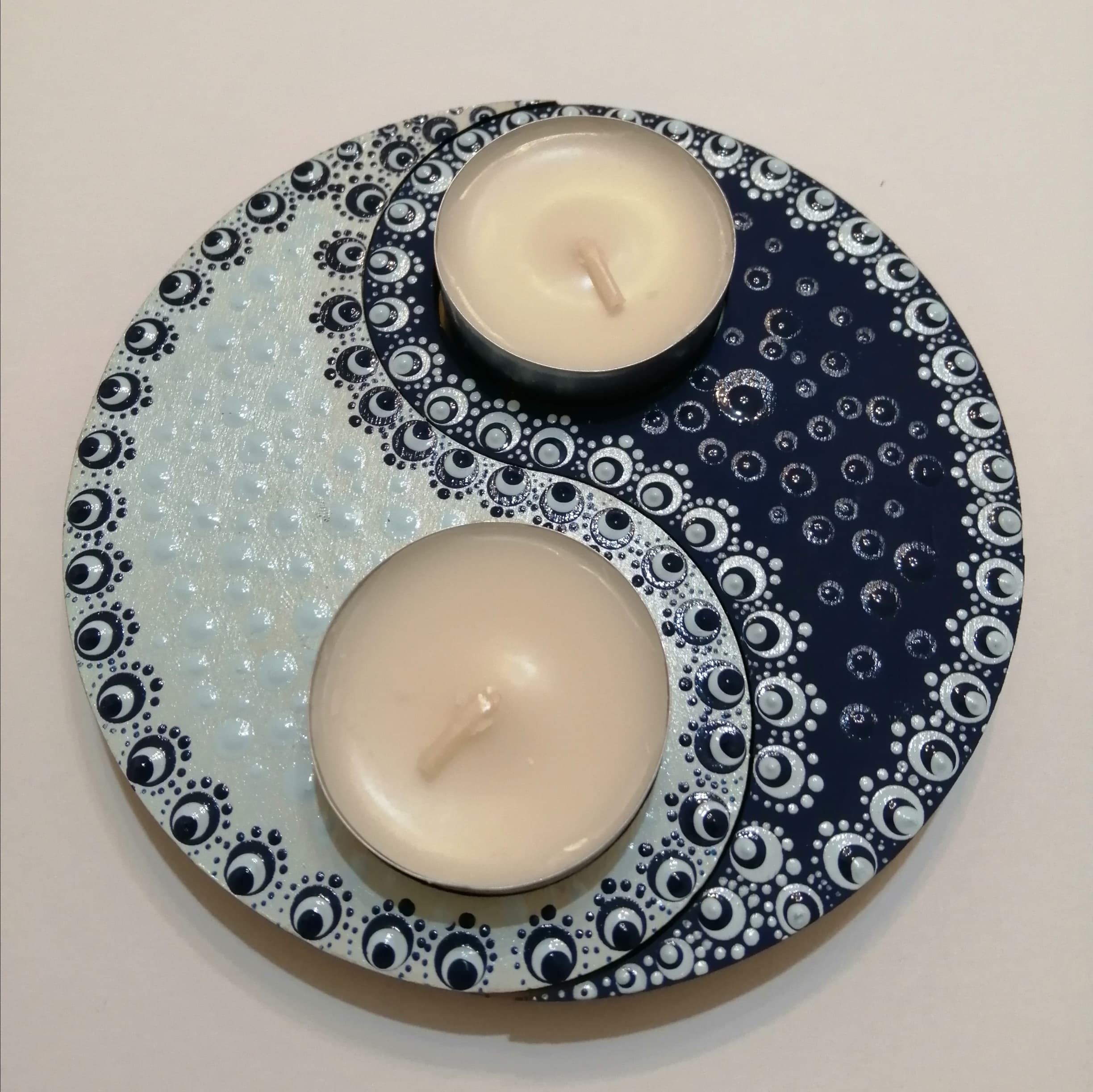Világoskék-Sötétkék Jin-Jang mécsestartó